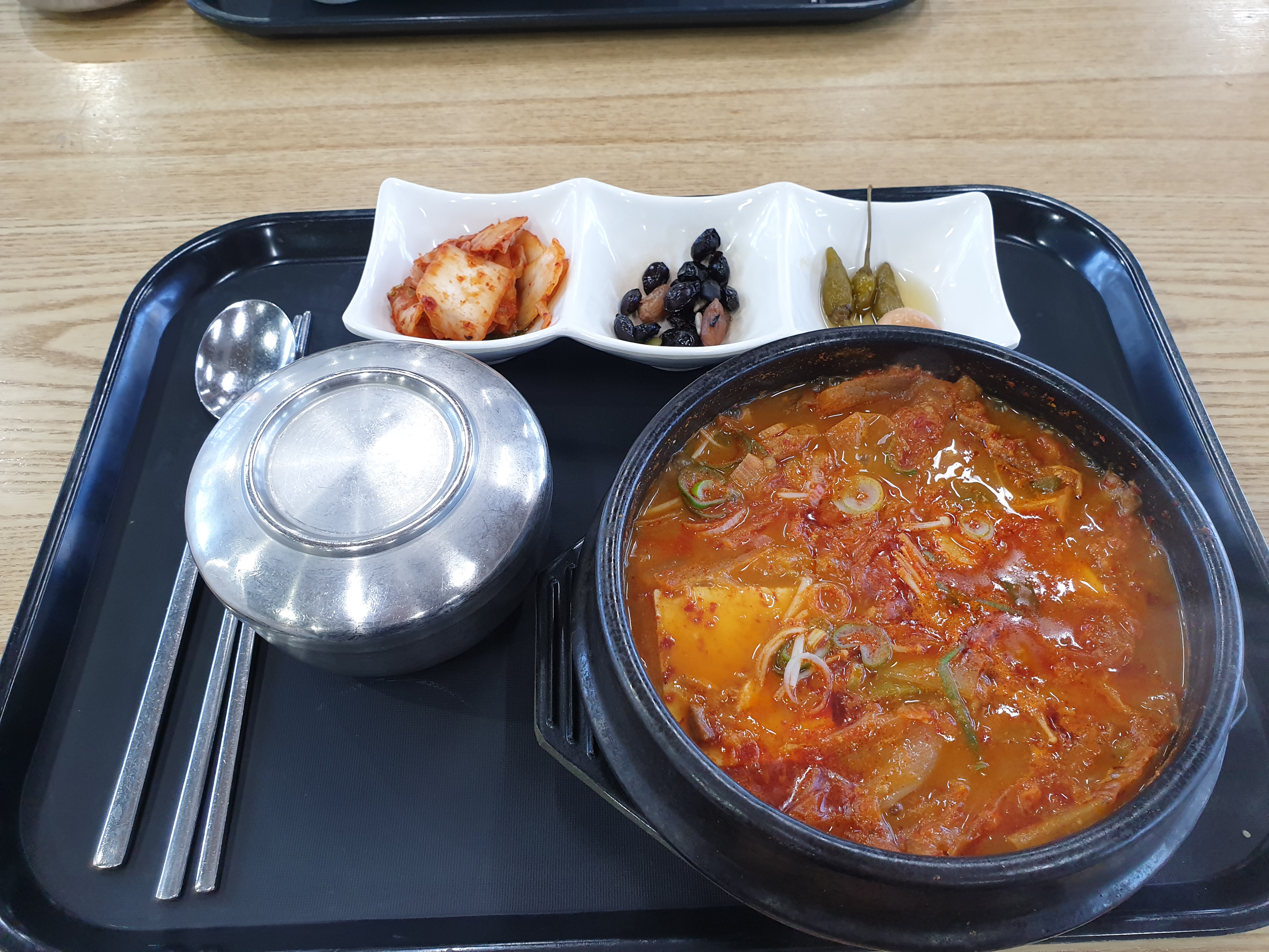 10시정도에 출발하여 홍천 휴게소에 다다른것이 12시정도였다. 이전에 한번 와본것 같기도한게 중간에 뻥 뚫린 뷰가 낯설지 않았다. 강습 예약을 1시 30분에 했는데 시간적인 여유가 충분하지 않아 서둘렀다. 휴게소하면 원래 우동이지만 바다 물 속에 들어가는데 면으로는 에너지가 충분하지 않을것 같아서 나는 김치찌개를 시켰고 여자친구도 똑같이 김치찌개를 주문해서 같이 먹었는데 생각보다 꽤 맛있었다. 휴게소에서 먹은 김치찌개중 순위권에 들만한 맛이었다.