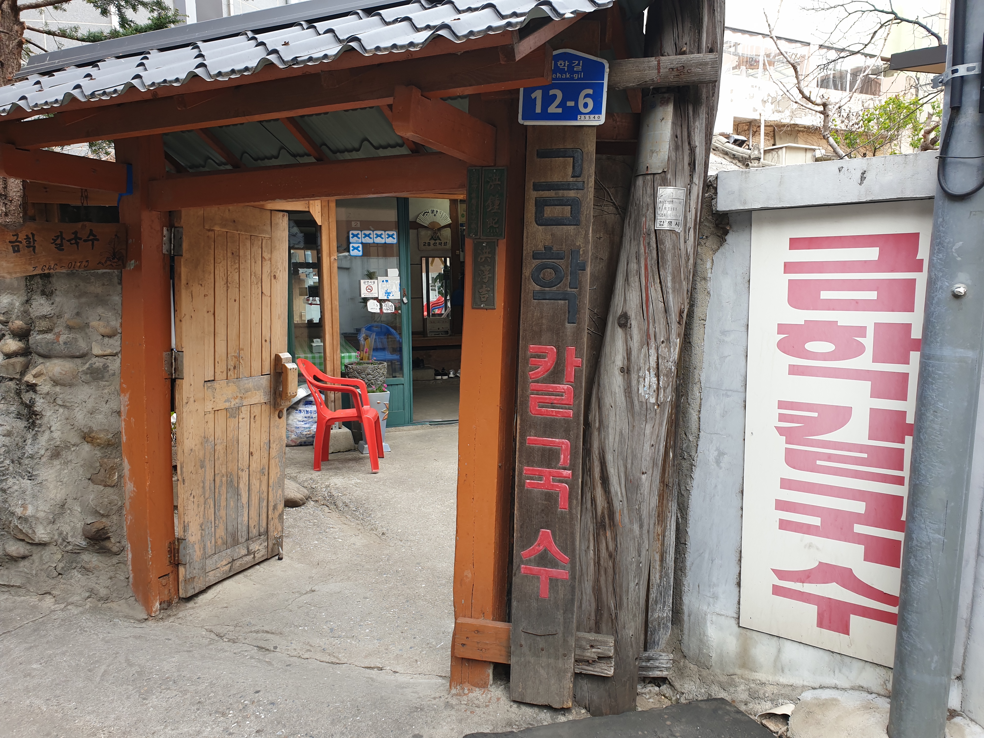 일출만 보고 다시 잠들었다가 푹 자고 10시 반쯤 일어났다. 체크아웃 시간이 11시였기 때문에 후다닥 준비를 하고 나와서 무엇을 먹을까하다가 장칼국수를 먹기로 결정했다. 장칼국수 집은 강릉 장칼국수 맛집이라고 검색하면 몇군데가 나오는데 그 중에 금학칼국수를 가기로 결정. 검색 시에 가장 가까운곳에 위치하고 있었다. 골목 안에 위치한 금학칼국수는 몇년 전부터 30년 전통을 자랑한다고 했으니 지금은 대략 35년 안밖의 전통을 자랑하는 것으로 여기면 되겠다. 시골 할머니집과 같은 풍경이다.