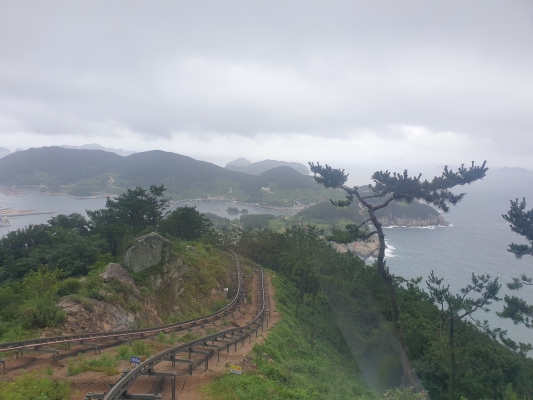 배를 채우고 욕지도 할매바리스타로 향했다. 할머니께서 커피를 내리시는 모양. 예전에 오스트리아 빈에서도 이런 느낌의 베이커리 카페가 매우 인기였는데 여기도 비슷한 느낌일지 궁금해서 방문해보았으나 그런 느낌과는 달리 그냥 동네 조그만 커피 전문점 느낌으로 고구마라떼를 먹었는데 맛이 우리 스타일은 아니었다. 라떼를 마신 후에는 욕지도의 명물로 새롭게 부상한 모노레일을 타러 갔다. 우리 숙소 바로 뒤편에 위치한 모노레일은 산 중턱부터 안개가 짙게 껴서인지 사람이 별로 없었다. 모노레일의 정상까지는 트래킹으로도 갈 수 있고 모노레일로도 다다를 수 있다. 우리는 날이 흐려 모노레일 왕복을 택했다.