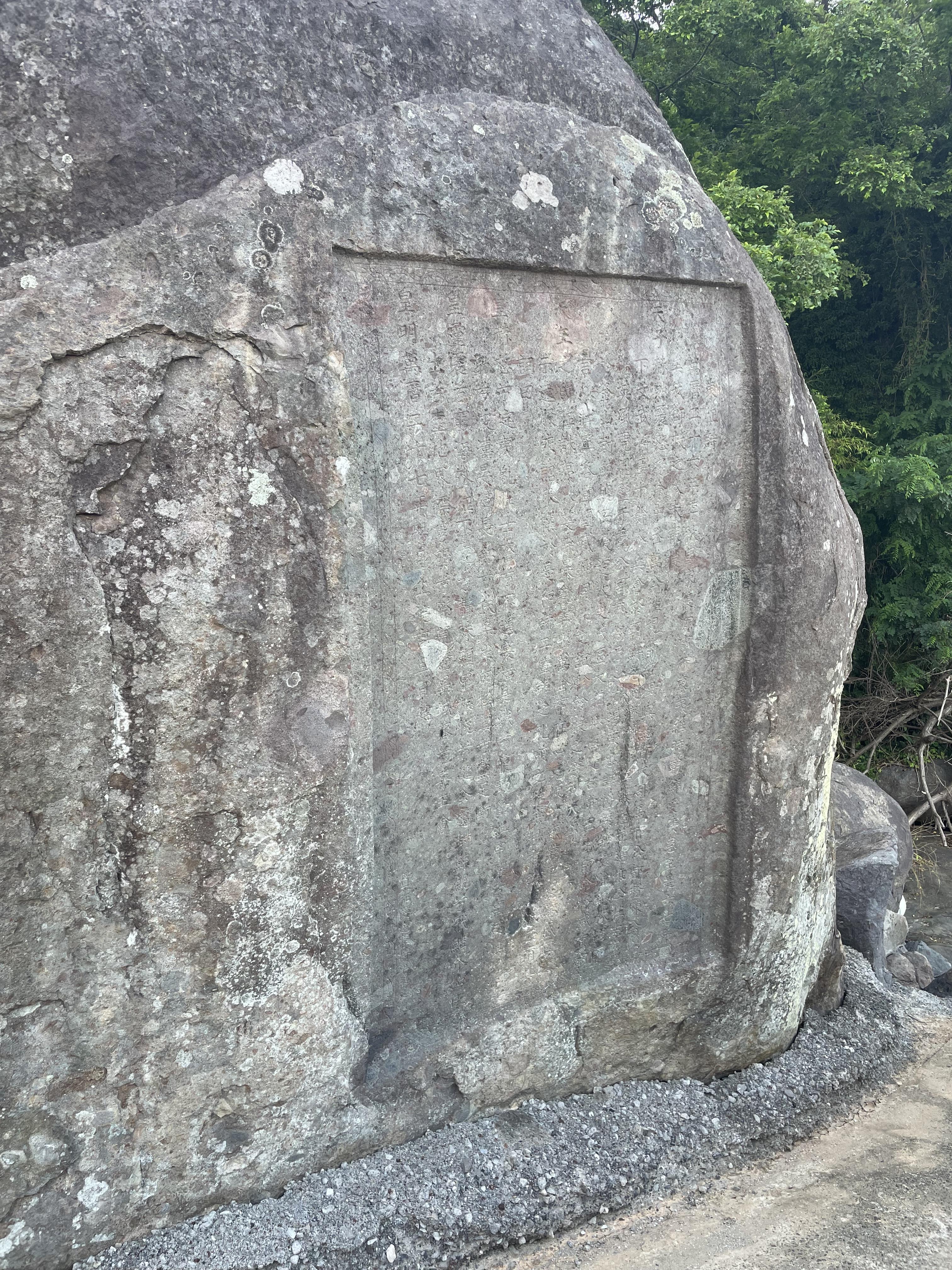 횟집 바로 우측에는 거대한 둥근 암석이 생뚱맞게 있었다. 더 생뚱맞은 사실은 그것이 유적이라는 사실이었다. '장량상 동정마애비' 라는 유적인데, 명나라 장수가 왜구를 물리치고 그 업적을 기린 시가 쓰여있다. 지금으로 보면 외국 유명 관광지에 와서 나 여기 와봤어요하고 인증샷을 찍는 느낌이랄까. 그때나 지금이나 사람은 똑같다. 일제강점기 시절 조선총독부의 '파괴 대상 왜구 격파 기념비' 목록에 들어가 있었는데 암석 자체가 너무 커서 파괴하지 못했다고 한다.